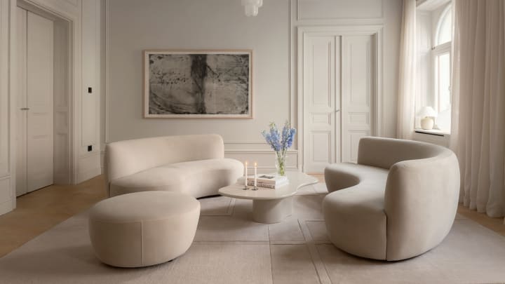 Moon wurde für all jene entworfen, die Design mit Charakter lieben, aber auch den Komfort schätzen, sich in etwas wirklich Bequemes sinken zu lassen. Die Moon-Serie besteht aus zwei Sofas in verschiedenen Größen sowie einem Hocker. Sie ist in zwei Stoffen erhältlich – Beige Bouclé und Velvet Greige.